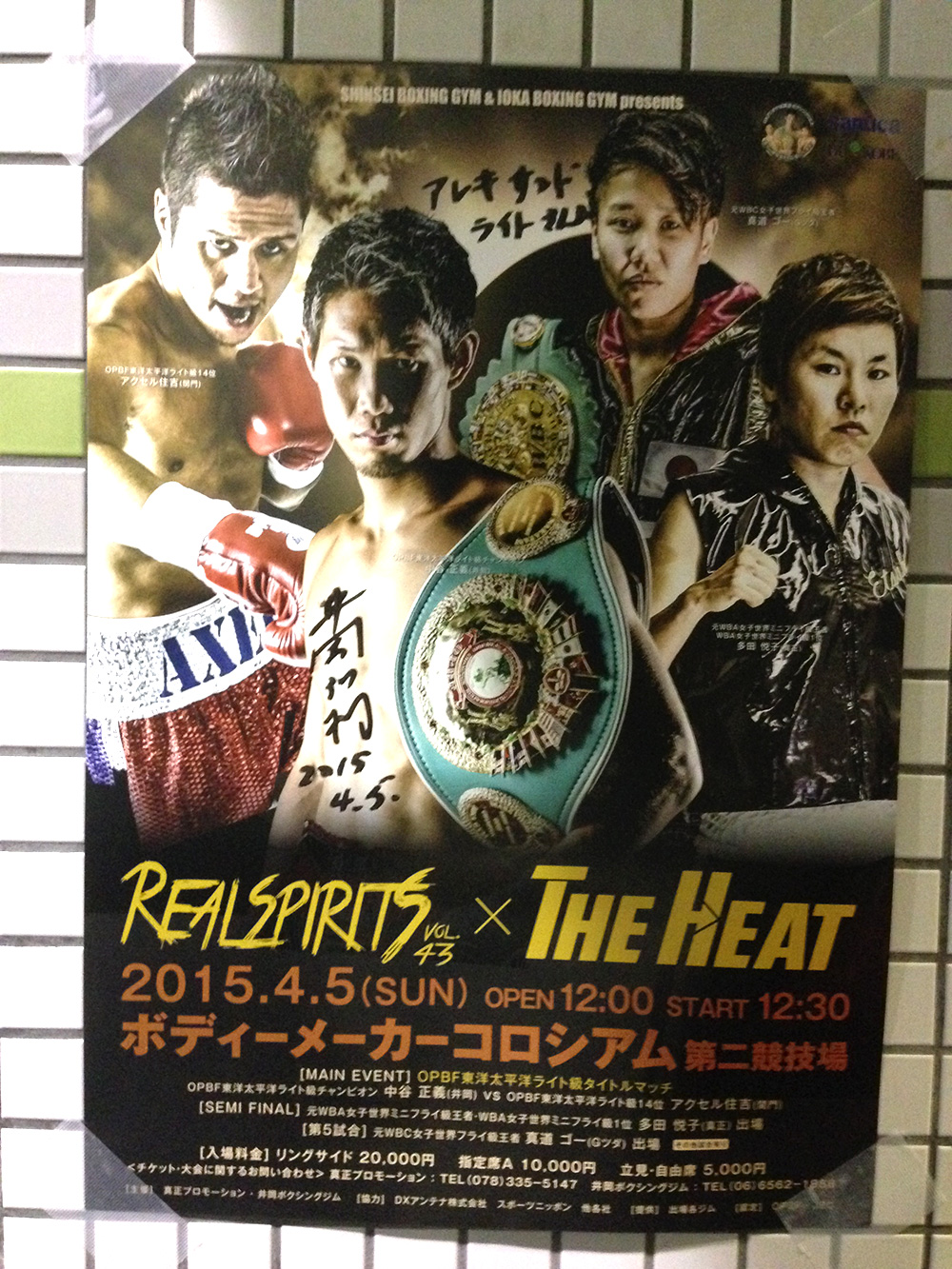 プロボクシング「REAL SPIRITS vol.43 × THE HEAT」 メイン:OPBF東洋太平洋ライト級タイトルマッチ 12R ■ 日程 2015年4月5日(日) ■ 会場 大阪府立体育会館(ボディーメーカーコロシアム) → NEWSページへ |